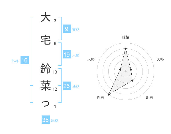 大宅 鈴菜っさんの総格は35画の4点!