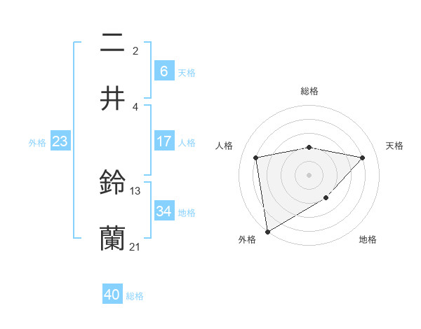 二井 鈴蘭さんの外格は23画の5点!