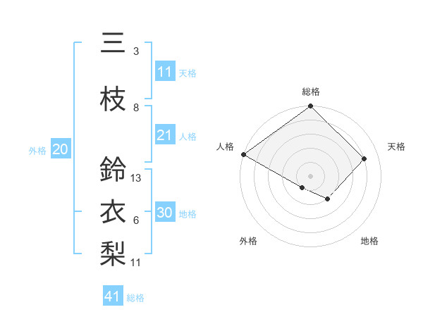 三枝 鈴衣梨さんの総格は41画の5点!