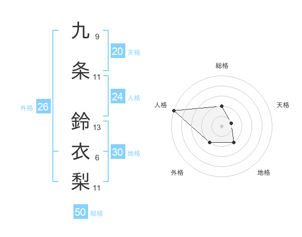 九条 鈴衣梨さんを姓名の画数から五運を鑑定