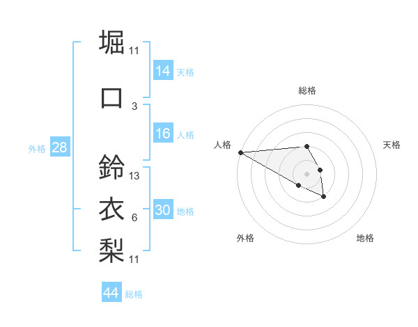 堀口 鈴衣梨さんを姓名の画数から五運を鑑定