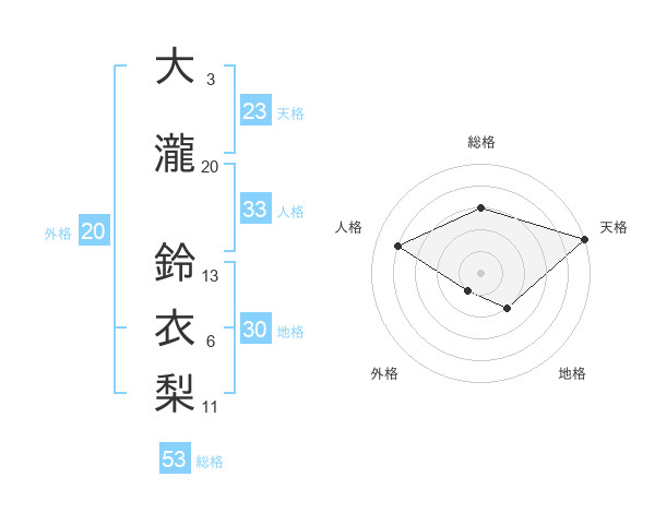 大瀧 鈴衣梨さんの総格は53画の3点!
