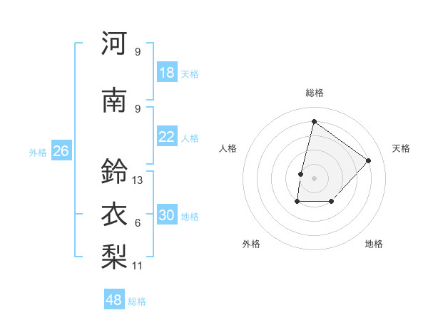 河南 鈴衣梨さんを姓名の画数から五運を鑑定