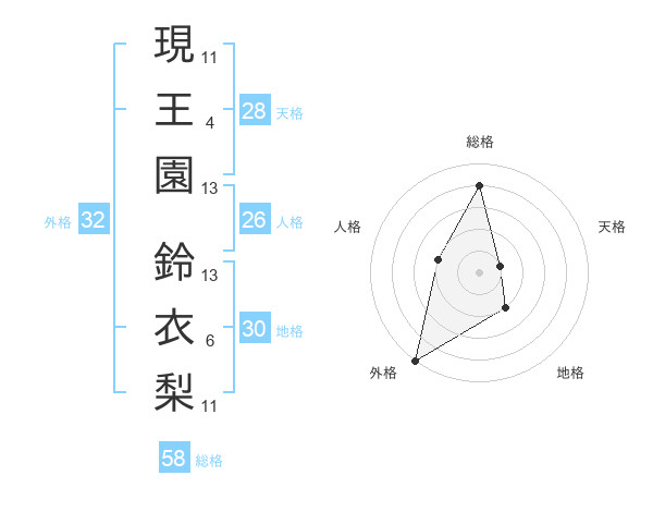 現王園 鈴衣梨さんを姓名の画数から五運を鑑定