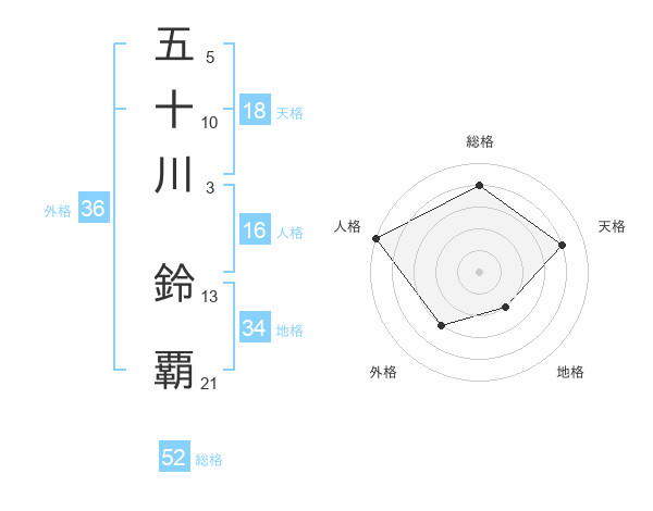 五十川 鈴覇さんの総格は52画の4点!