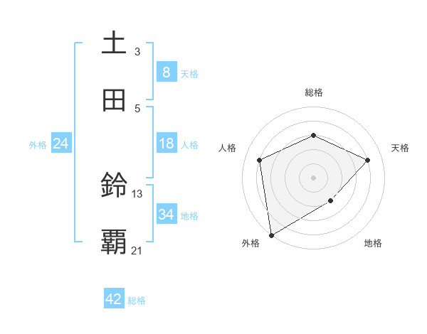 土田 鈴覇さんを姓名の画数から五運を鑑定