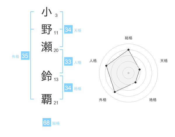 小野瀬 鈴覇さんの総格は68画の4点!