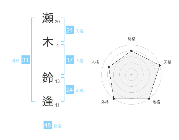 瀬木 鈴逢さんを姓名の画数から五運を鑑定