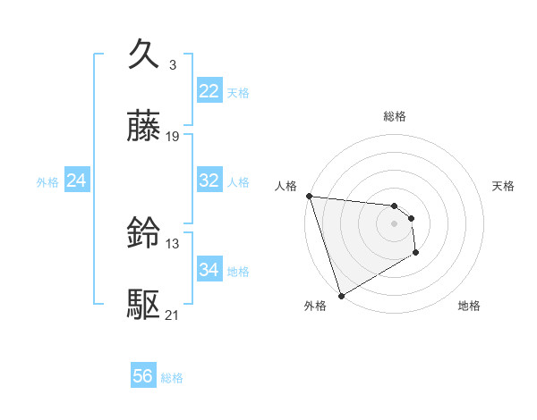 久藤 鈴駆さんを姓名の画数から五運を鑑定