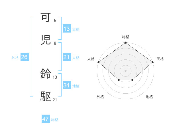 可児 鈴駆さんの総格は47画の5点!