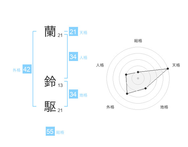 蘭 鈴駆さんの総格は55画の1点!