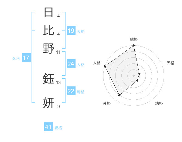 日比野 鈺妍さんを姓名の画数から五運を鑑定