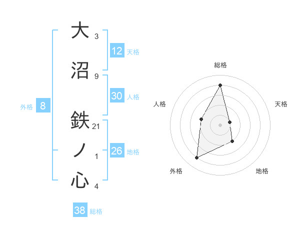 大沼 鉄ノ心さんの名前の鑑定結果は!