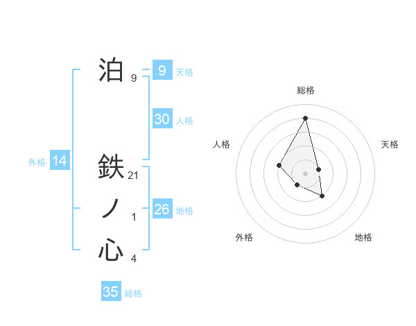 泊 鉄ノ心さんの名前の鑑定結果は!