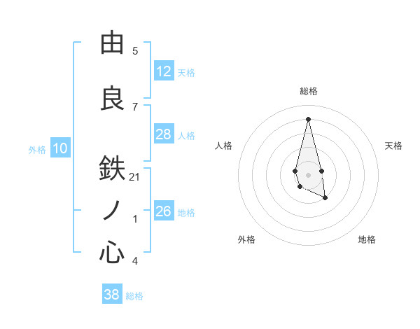 由良 鉄ノ心さんの総格は38画の4点!