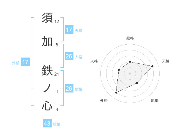 須加 鉄ノ心さんを姓名の画数から五運を鑑定