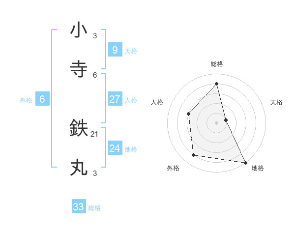 小寺 鉄丸さんの総格は33画の4点!