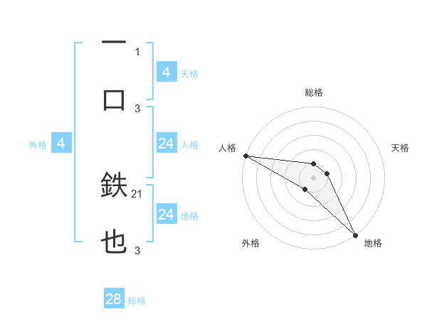 一口 鉄也さんの総格は28画の1点!