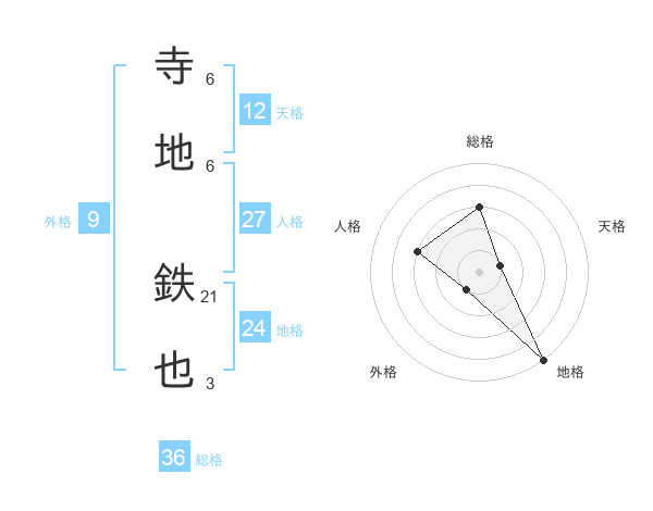寺地 鉄也さんの総格は36画の3点!