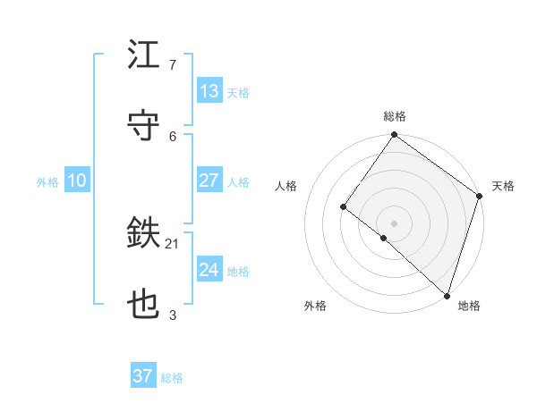江守 鉄也さんを姓名の画数から五運を鑑定