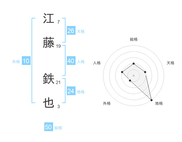 江藤 鉄也さんを姓名の画数から五運を鑑定