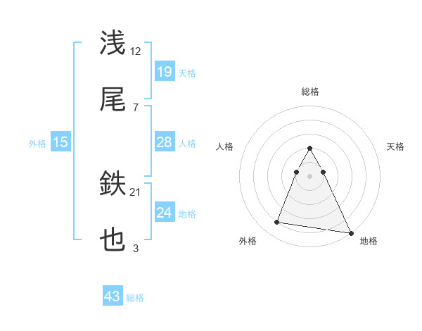 浅尾 鉄也さんの総格は43画の2点