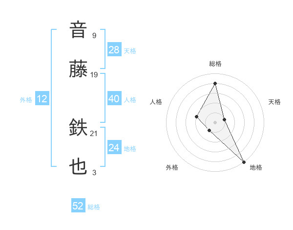 音藤 鉄也さんを姓名の画数から五運を鑑定