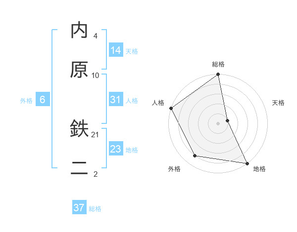 内原 鉄二さんの総格は37画の5点!
