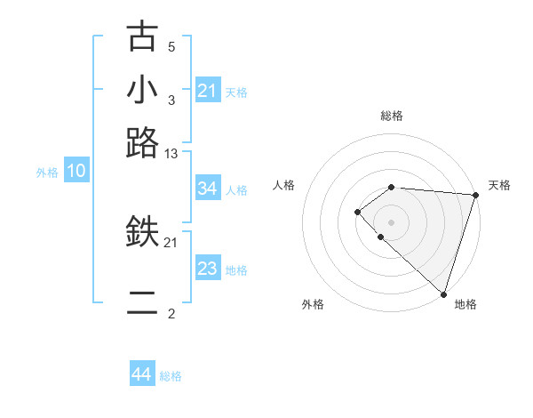 古小路 鉄二さんを姓名の画数から五運を鑑定