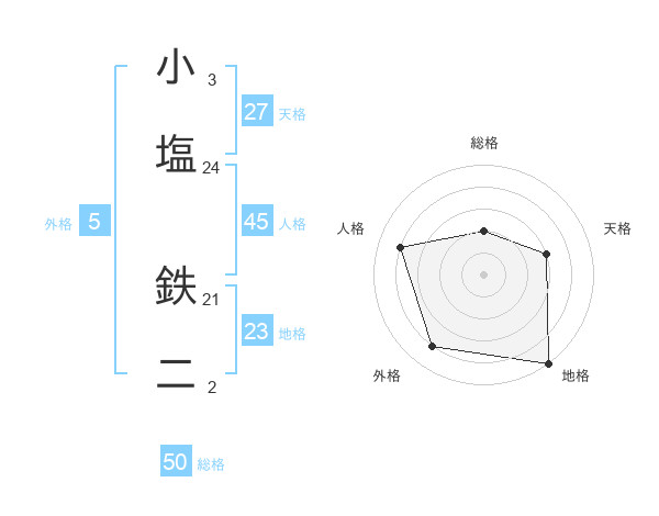 小塩 鉄二さんの総格は50画の2点!