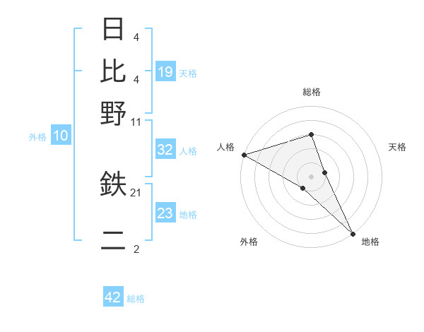 日比野 鉄二さんを姓名の画数から五運を鑑定