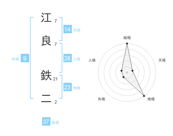 江良 鉄二さんの総格は37画の5点!
