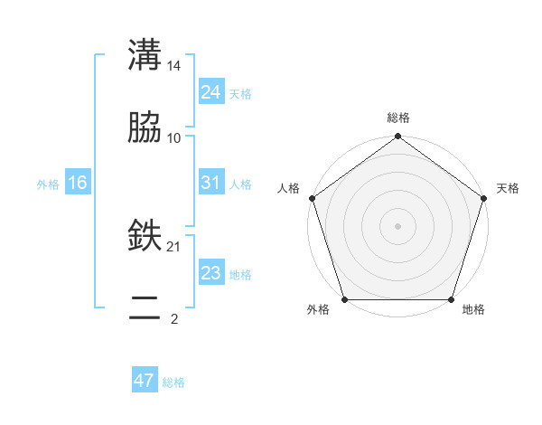 溝脇 鉄二さんの総格は47画の5点!