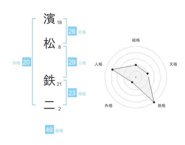 濱松 鉄二さんを姓名の画数から五運を鑑定