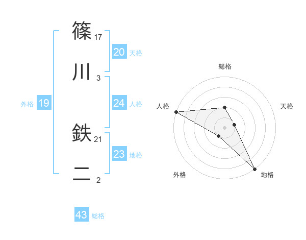 篠川 鉄二さんを姓名の画数から五運を鑑定