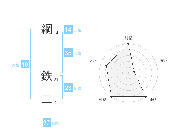綱 鉄二さんの総格は37画の5点!