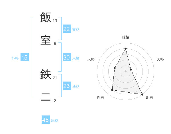 飯室 鉄二さんを姓名の画数から五運を鑑定