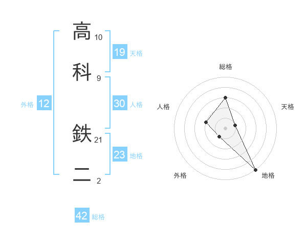 高科 鉄二さんを姓名の画数から五運を鑑定
