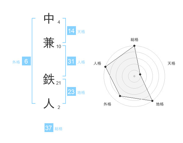 中兼 鉄人さんの総格は37画の5点!