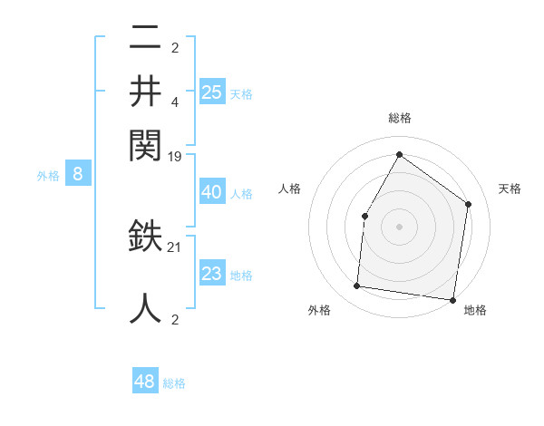 二井関 鉄人さんの総格は48画の4点!