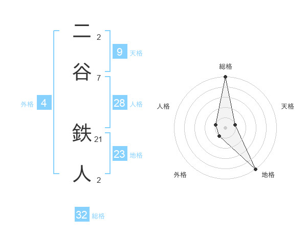 二谷 鉄人さんを姓名の画数から五運を鑑定