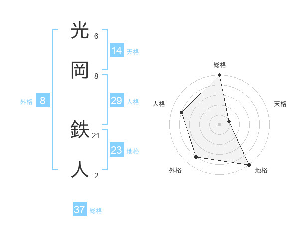 光岡 鉄人さんを姓名の画数から五運を鑑定