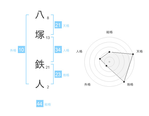 八塚 鉄人さんの総格は44画の2点!
