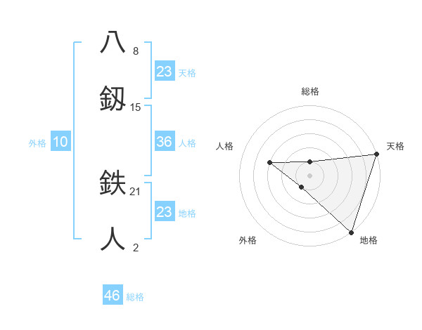 八釼 鉄人さんの地格は23画の5点!