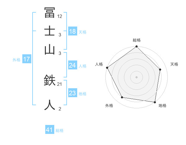 冨士山 鉄人さんを姓名の画数から五運を鑑定