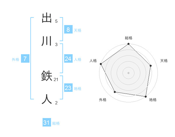 出川 鉄人さんの総格は31画の5点!
