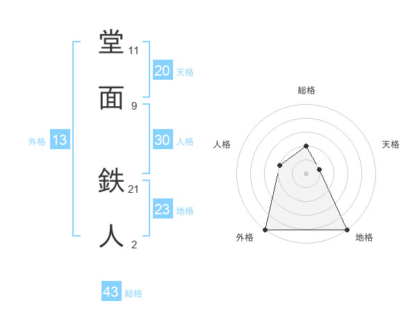 堂面 鉄人さんの総格は43画の2点!