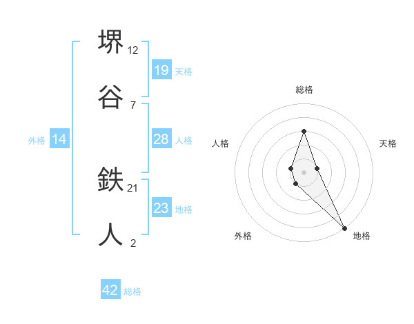 堺谷 鉄人さんの総格は42画の3点!