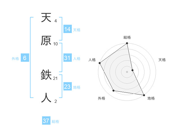 天原 鉄人さんの総格は37画の5点!
