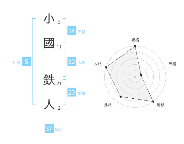 小國 鉄人さんの総格は37画の5点!